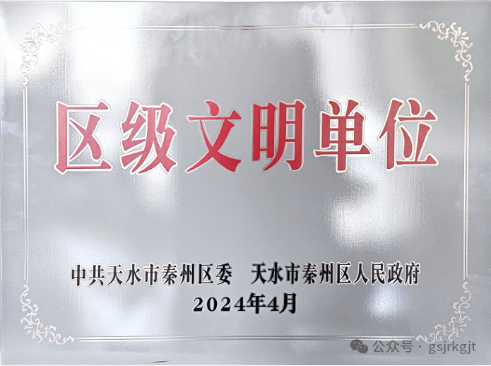 近日,开云足球天水担保由中共天水市秦州区委、天水市秦州区人民政府授予“区级文明单位”荣誉称号。